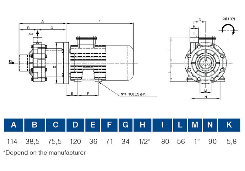 1 = BSP STD 2 = FLANGED | IE = 3PH STD X = ATEX 1P = 1PH STD – = SIN MOTOR | 0,55 = 0,55 Kw STD 0,75 = 0,75 Kw STD |