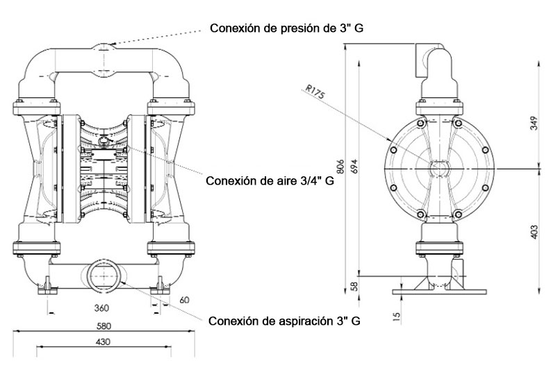 Conexión de presión y aspiración | G 3" |