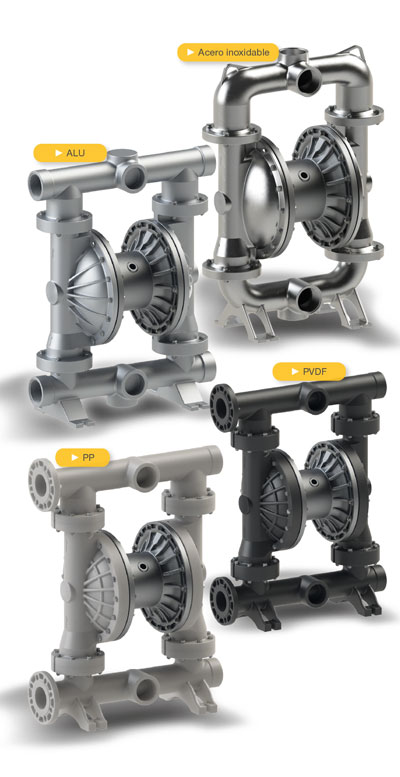 PP | PVDF | Aluminio | Acero inoxidable | |