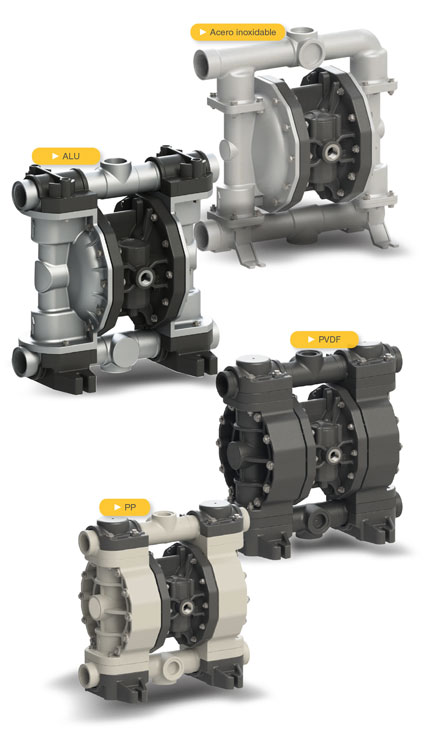 PP | PVDF | Aluminio | Acero inoxidable | |