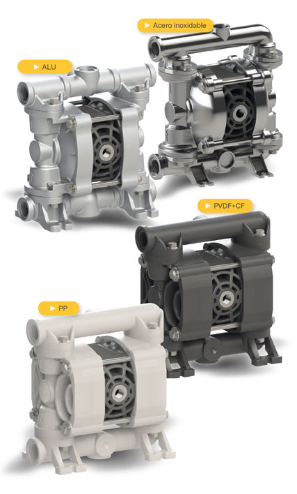 PP | PVDF | Aluminio | Acero inoxidable | |