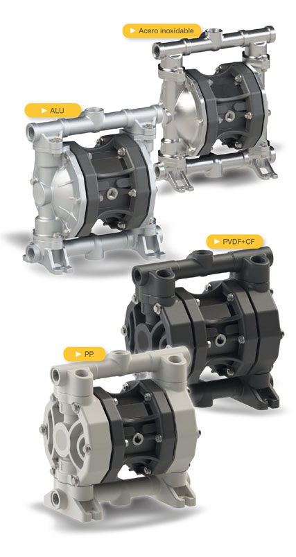 PP | PVDF | Aluminio | Acero inoxidable | |
