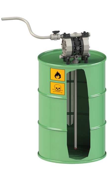 Debido a los diferentes materiales de las bombas, se puede bombear una gran variedad de medios. La bomba se puede montar rápida y fácilmente en el tambor. El barril se vacía completamente con un tubo de aspiración