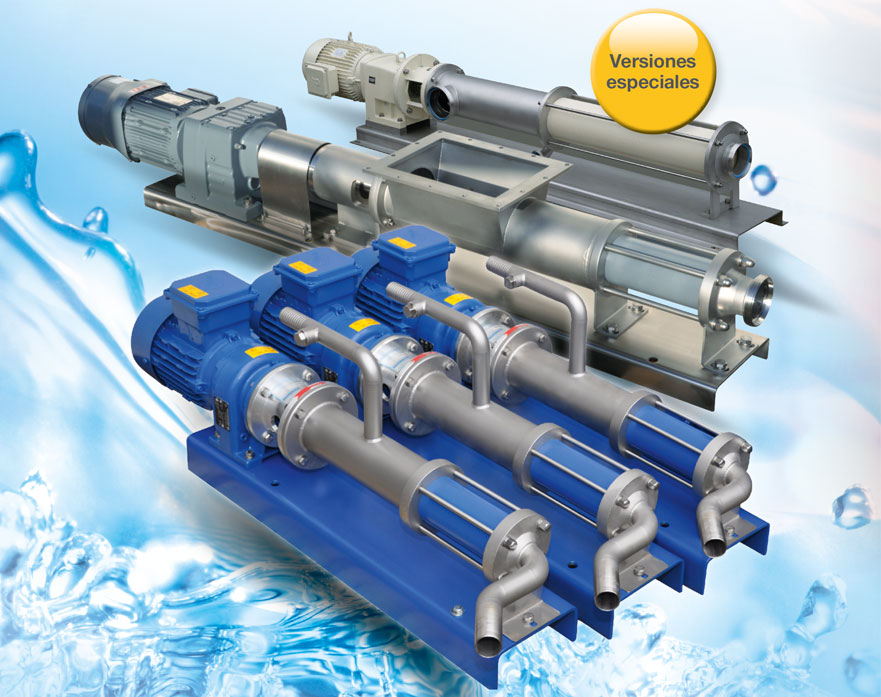 Basándonos en la serie convencional, ofrecemos numerosos diseños especiales. Especialmente para la industria de procesamiento de frutas o la vinicultura podemos suministrar bombas con una carcasa de tolva y un tornillo de alimentación.