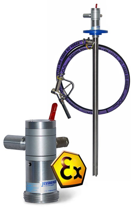 • El sólido y compacto motor neumático a prueba de explosiones JP-AIR 1 está fabricado y aprobado según las directivas de protección contra explosiones ATEX 2014/34/UE categoría 2, ofrece la máxima protección y, al igual que el motor eléctrico JP-400, es apto para medios inflamables y para su uso en áreas peligrosas. El motor neumático es antideflagrante según la clase de protección Ex 2GD c IIC T6 (80°C) X y tiene un certificado de examen CE de tipo IBEX U05 ATEX B007 X. Se requieren aprobaciones independientes de acuerdo con las directivas ATEX 2014/34/EU para el motor y las estaciones de bombeo que pueden utilizarse para él, y se debe instalar una conexión equipotencial.