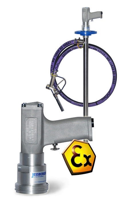 • El sólido y compacto motor neumático a prueba de explosiones JP-AIR 2 está fabricado y aprobado según las directivas de protección contra explosiones ATEX 2014/34/UE categoría 2, ofrece la máxima protección y, al igual que el motor eléctrico JP-400, es apto para medios inflamables y para su uso en áreas peligrosas. El motor neumático es antideflagrante según la clase de protección Ex 2GD c IIC T6 (80°C) X y tiene un certificado de examen CE de tipo IBEX U05 ATEX B007 X. Se requieren aprobaciones independientes de acuerdo con las directivas ATEX 2014/34/EU para el motor y las estaciones de bombeo que pueden utilizarse para él, y se debe instalar una conexión equipotencial.