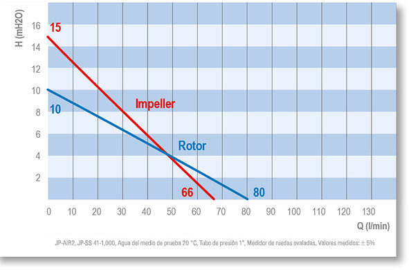 * Todos los datos físicos son valores máximos reales medidos. * Medio de prueba: Agua 20°C, tubo de presión horizontal de 2 m 1", medidor de rueda ovalada 1", valores medidos +/-5%. |